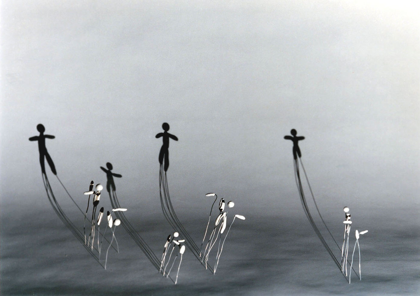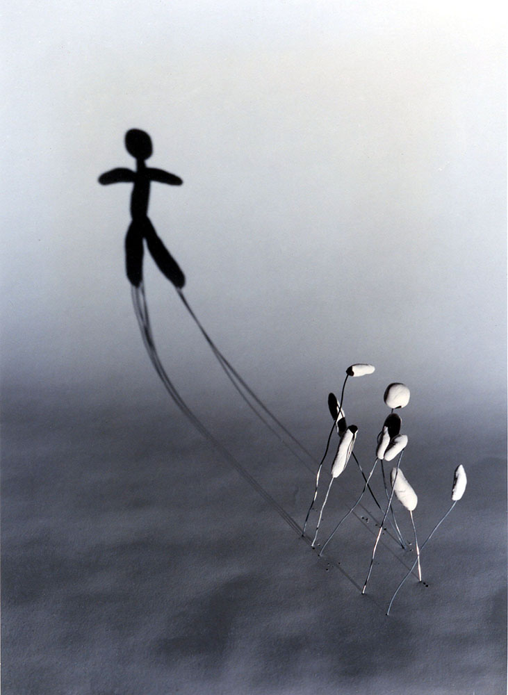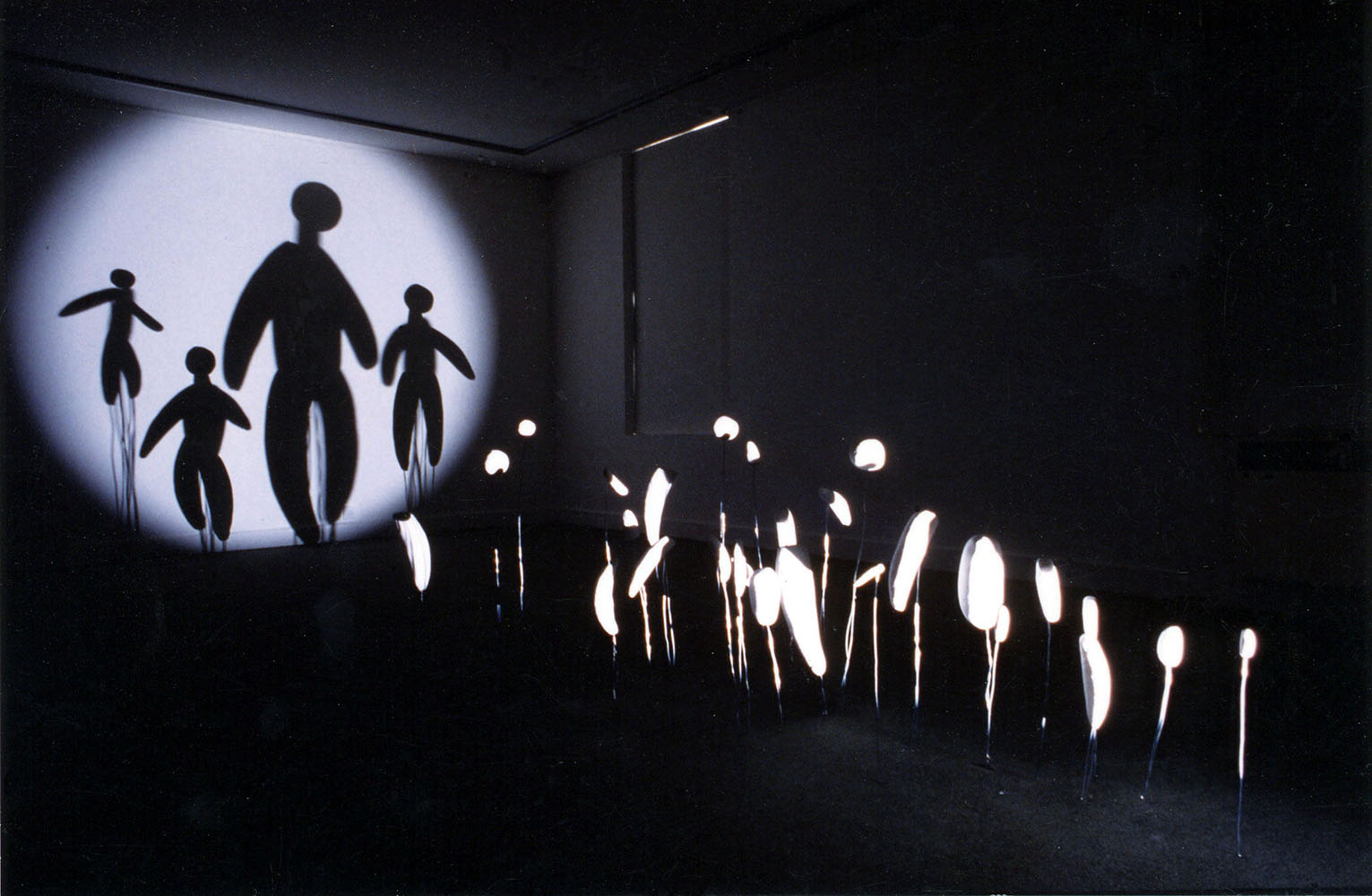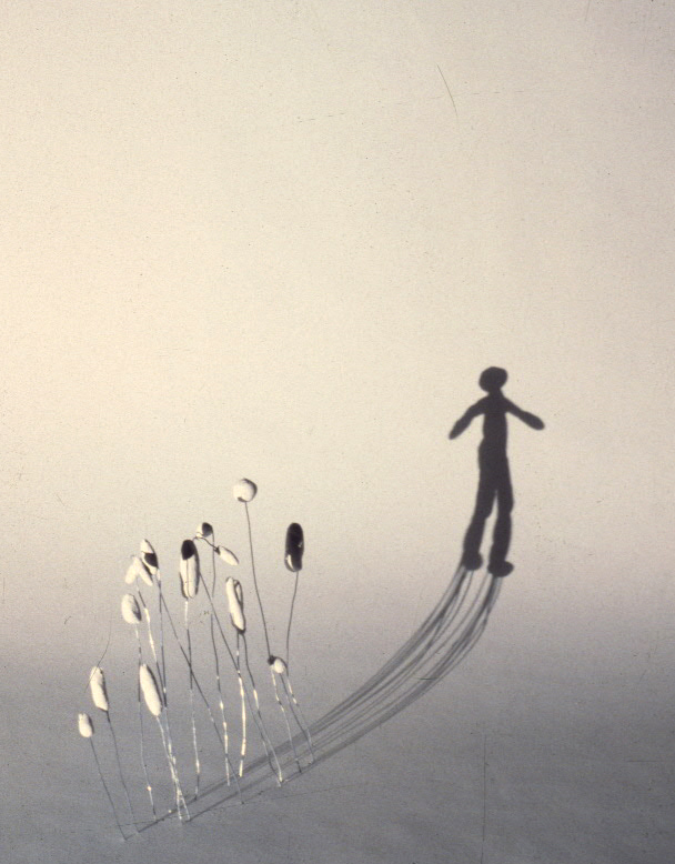 Techniques mixtes, polystyrène expansé, colle, peinture, tige de fer, projecteur